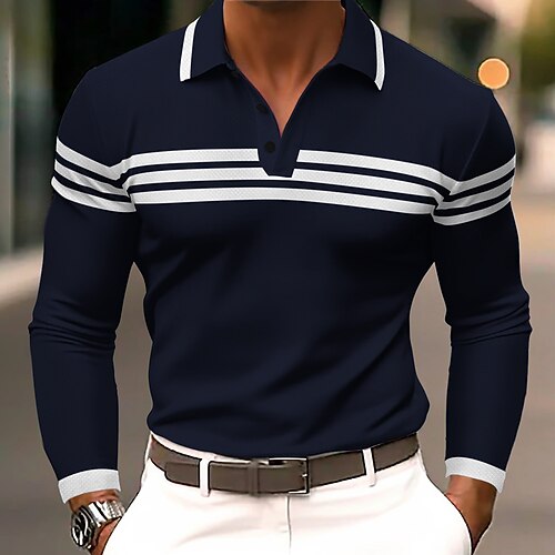 Herren Horizontale Streifen Polo Langarm Polo-Shirts Revers Business-Casual Athleisure Alltagskleidung 3D-Druck Knöpfe Frühling Herbst Schwarz Rote Grün