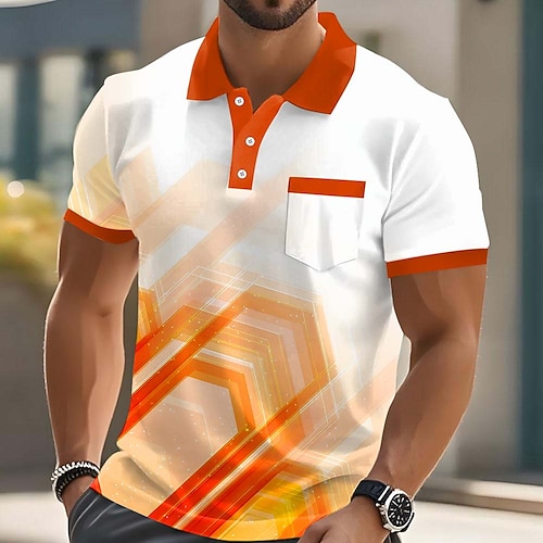 Herren Geometrisch Poloshirts Kurzarm Polo-Shirts Hemden mit Kragen Business-Casual Outdoor Athleisure Alltagskleidung 3D-Druck Knöpfe Frühling Sommer Blau Rote Orange