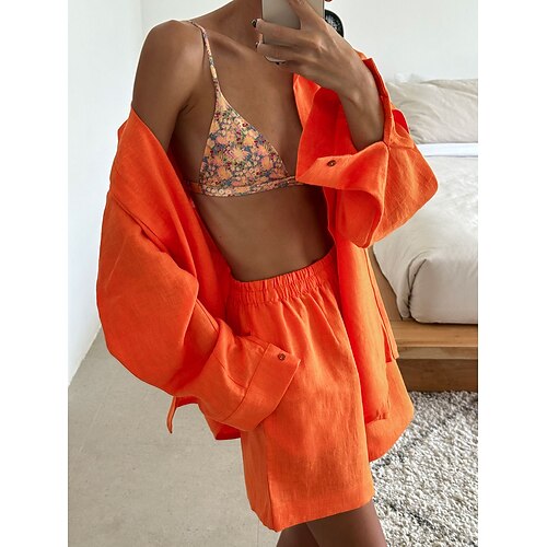 Per donna Set di biancheria in cotone Set di Pantaloncini Bolero Top Manica Lunga Colletto a Camicia Semplice Arricciato Patchwork Moda Streetwear Casuale Quotidiano All'aperto Nero Bianco Rosa Estate