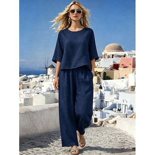 Per donna Set di biancheria in cotone Manica 3/4 Girocollo Vacanza Essenziale Casuale Quotidiano Vacanza Nero Bianco Blu marino Estate Vestibilità comoda