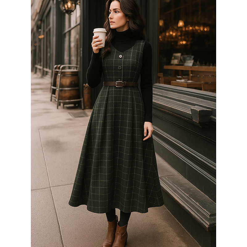 Women's Midi Dress Sheath Dress A Line Dress Vacation Casual Boho Daily Holiday Plaid Long Sleeve Turtleneck Deep Green Navy Brown