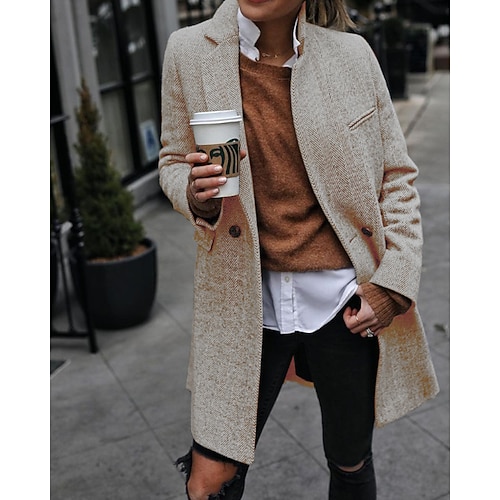 Per donna Cappotto Invernale Cappotto Caldo Confortevole Tasca Bottoni Casual Plaid Vacanza Streetwear Casuale Abbigliamento quotidiano Lungo Collo ripiegato Vestibilità regolare Manica Lunga