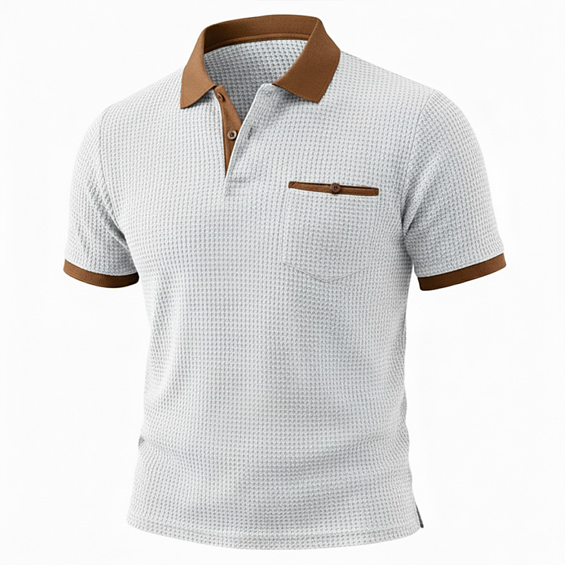 Men's Golf Shirt Waffle Knit Polo Shirt Casual Business Ribbed Polo Collar Classic Short Sleeve Fashion Modern Solid Color Buttons Summer Spring All Seasons Slim Fit White Pink Navy Blue Green Beige