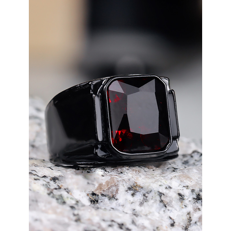 Men's Black Alloy Ring with Square Black Gemstone – Fashionable Statement Ring for Casual and Evening Wear