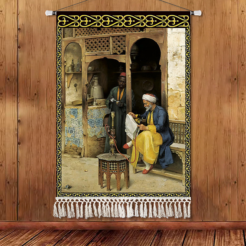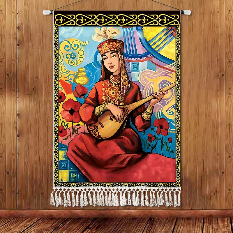 Beauty Uyghur Ethnic Style Wall Tapestry, Artistic Background Decoration, Boho Hanging Art for Bedroom, Living Room, or Cafe