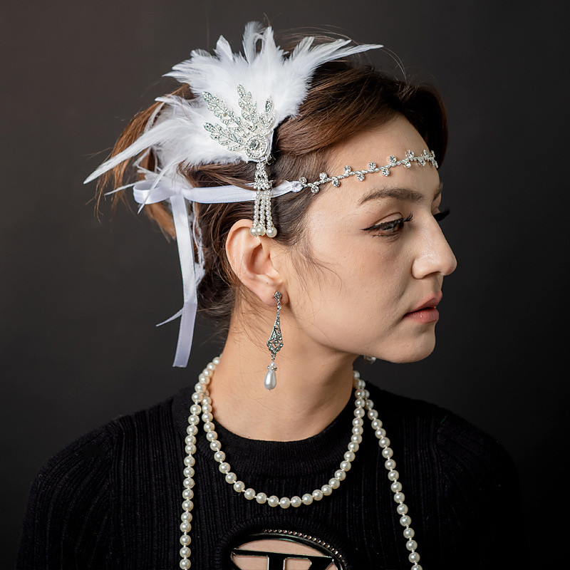 Set with Flapper Dress Feather Headband Necklace Earings Long Opera Gloves Fishnet Socks Women's Roaring 20s 1920s Flapper Girl Costume Outfits Cocktail Masquerade Party