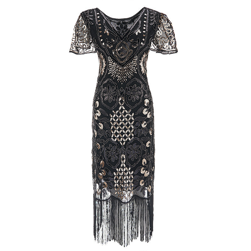 Retro Vintage Roaring 20s 1920s Knee Length Flapper Dress Dress Outfits Short Sleeves The Great Gatsby Wedding Guest Sequins Tassel Fringe V Neck Fancy Dress Women's Christmas Carnival Masquerade