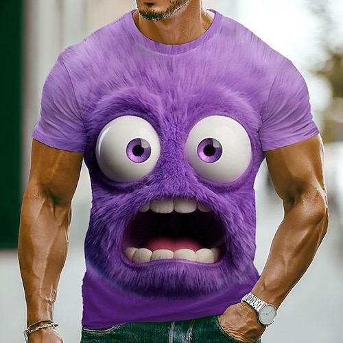 Realistisches 3D-Clown-T-Shirt für Herren mit roter Nase und herausgestreckter Zunge – witziger Allover-Print, normale Passform, lässig, alltagstauglich, Kostümparty-Geschenk, Designer-Kleidung,