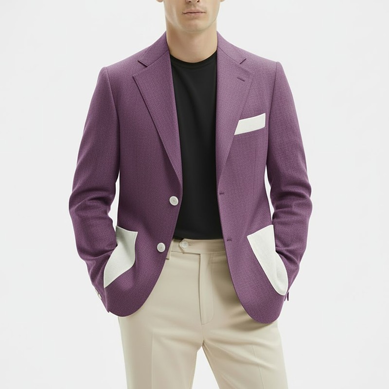 Men's Blazer Jacket Ultra-thin Serge Notch Collar Fashion Lightweight Casual Patchwork Blazer Pink Sky Blue Sage Tailored Fit Single Breasted Two-buttons