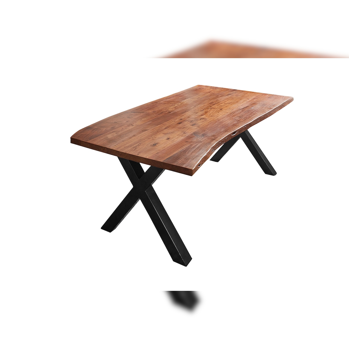 SAM® Esstisch Baumkante massiv Akazie nuss 160 x 85 X-Gestell schwarz XANTEN