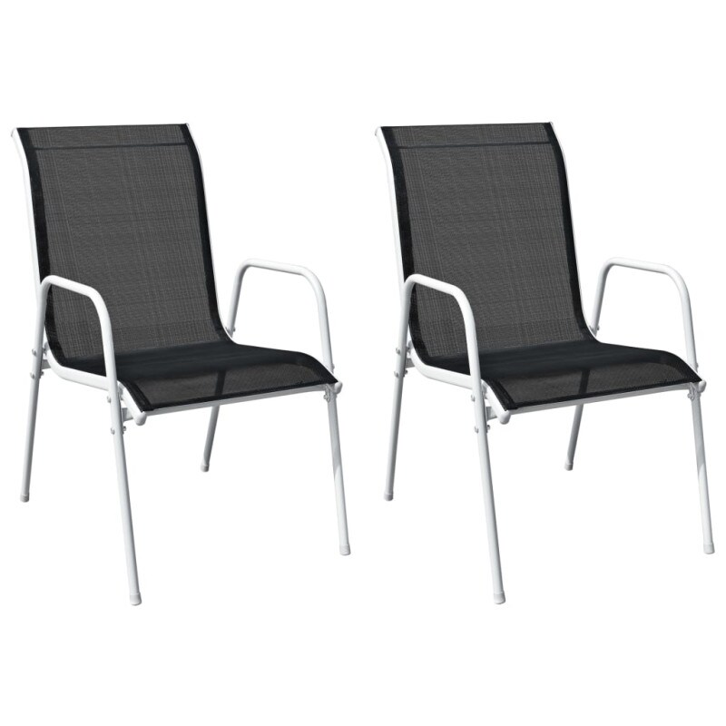 vidaXL Stapelbare Gartenstühle 2 Stk. Stahl und Textilene Schwarz