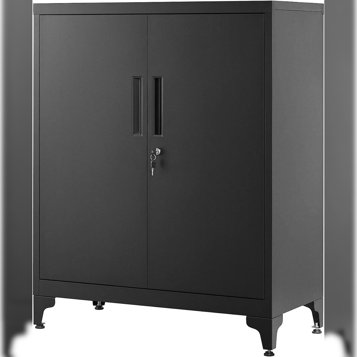 Aktenschrank aus Stahl 90 x 80 x 40 cm, Mehrzweckschrank, Büroschrank mit 2 Türen, aus Pulverbeschichteter Stahl, verstellbare Ablagen, schwarz