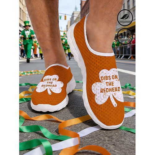scarpe slip-on da uomo con stampa trifoglio per San Patrizio: comode e leggere sneakers casual in rete per outfit da parata irlandese, feste al pub, eventi del festival incontri a tema