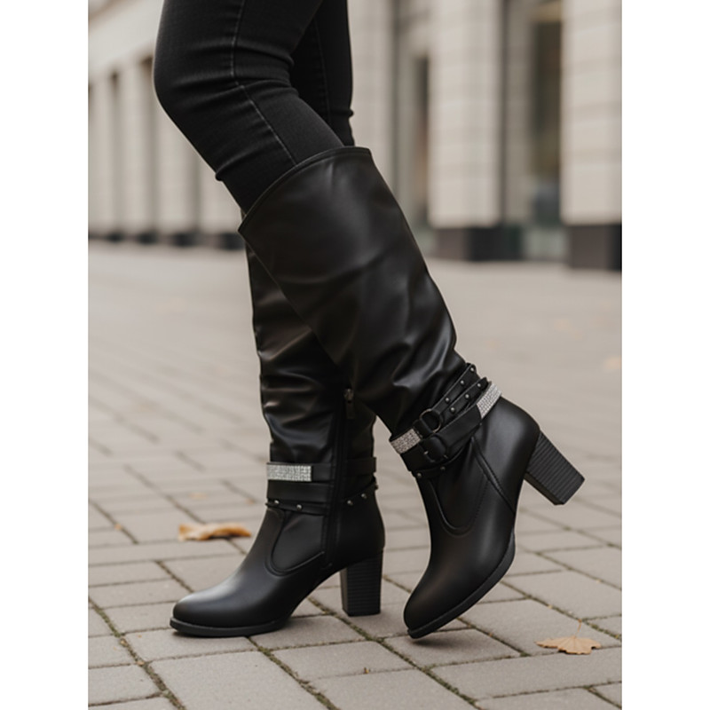Women's Black and White Buckle Ankle Boots with High Heel - Chic Fashion Style, Perfect for Winter, Office Wear and Evening Events