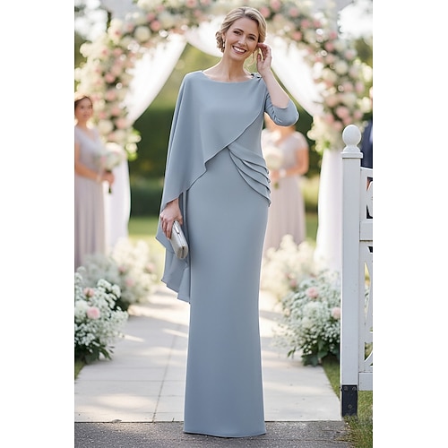 Tubino Colonna Abito Lunghezza al pavimento Abito da invitata a nozze Abito Formale Abito da sera Abito da cerimonia per signora Manica 3/4 Girocollo Elegante Formale Raso con Bottoni Tinta unita