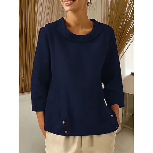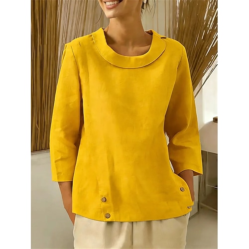 Per donna Blusa Top Eleganti Arricciato Patchwork Bottoni Tinta unica Semplice Elegante Signore Classico Manica Lunga Girocollo Top Regolari Quotidiano Lavoro Ferie Blu Giallo Rosa Vino Blu Reale