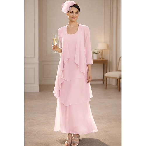 Tre Pezzi Lunghezza al pavimento Abito da cerimonia per signora Senza Maniche Scollo a Barca Elegante Taglie Forti Ospite di nozze Chiffon Con Stola con Tinta unita