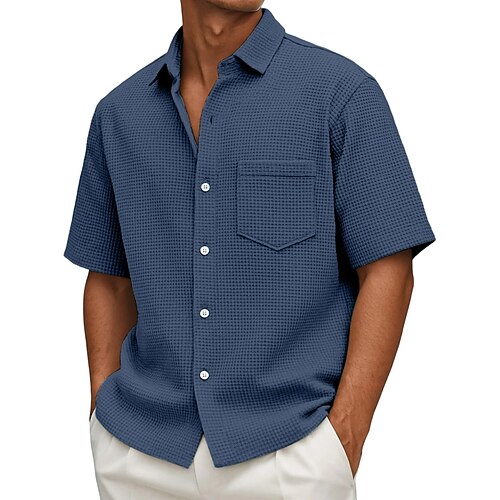 Per uomo Camicia Camicia a nido d'ape Tessuto Camicia casual Camicia con Bottoni Nero Bianco Vino Blu marino Azzurro cielo Manica Corta Semplice Bavero Casuale Quotidiano Tasca Abbigliamento Moda
