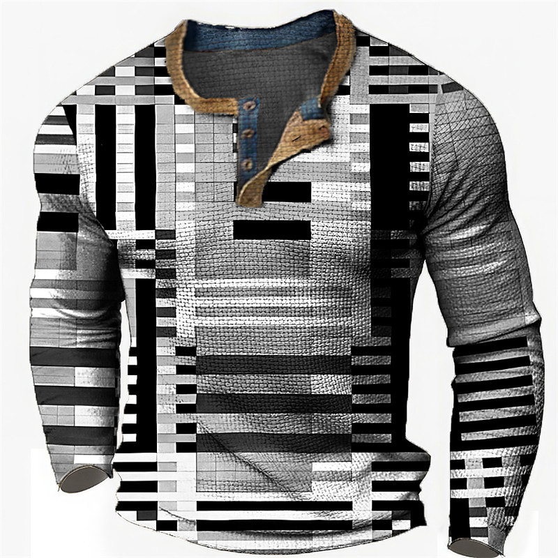 Men's Graphic Geometic Henley Shirt Waffle T Shirt Long Sleeve 3D Print Fashion Designer Casual Sports Outdoor Holiday Festival Spring Fall Blue Green Khaki Gray Henley Henley T-Shirt