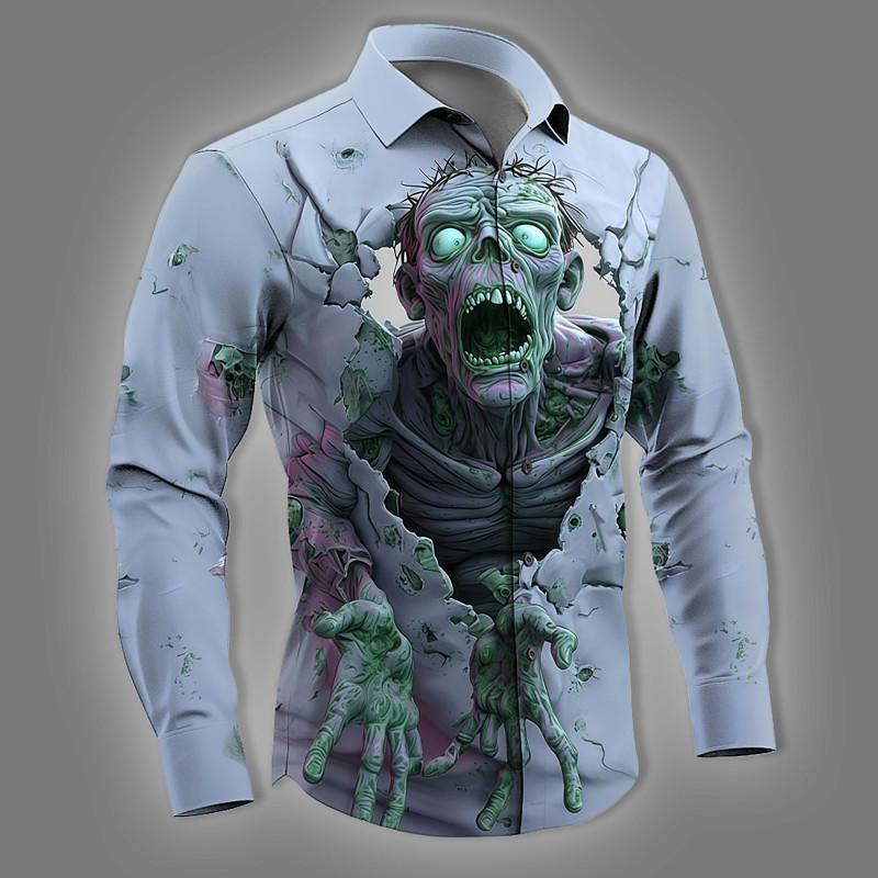 Halloween Men's Zombies Skeleton Horror Shirt Button Up Shirt Long Sleeve Dark Gothic Style Holiday Streetwear Spring Fall Turndown 3D Print Collared Shirts Blue Green Khaki