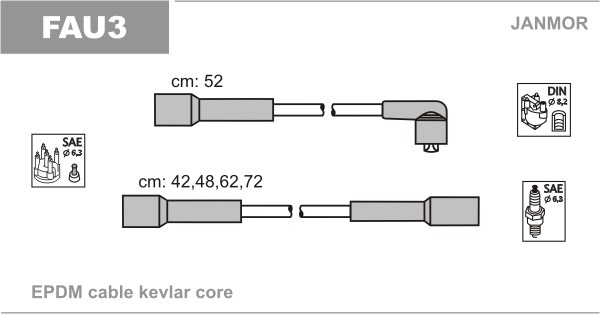 Sytytysjohtosarja Janmor FAU3 - fiat panda, panda skåp/halvkombi, tipo, uno, lancia y10 - OE 75 965 50, 75 978 31, 7596550