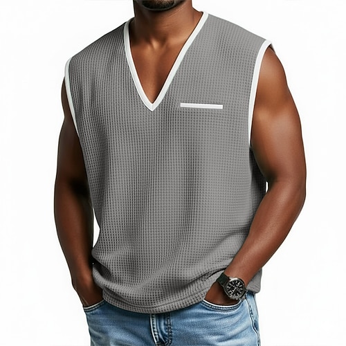 Per maschio Camicia a nido d'ape Canotta a nido d'ape Canotta Gilet Senza Maniche Scollo a V Estate Semplice Testurizzato Moda Classico Casual Patchwork Blocco di colore Casuale Palestra Streetwear