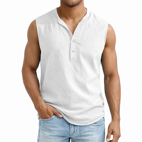Per uomo Canotta Canottiera T-shirt tipo lino Senza Maniche Henley Estate Semplice Moda Classico Confortevole Bottoni Con Spacco Casuale Palestra Streetwear Nero Bianco Blu marino Maglietta Top per