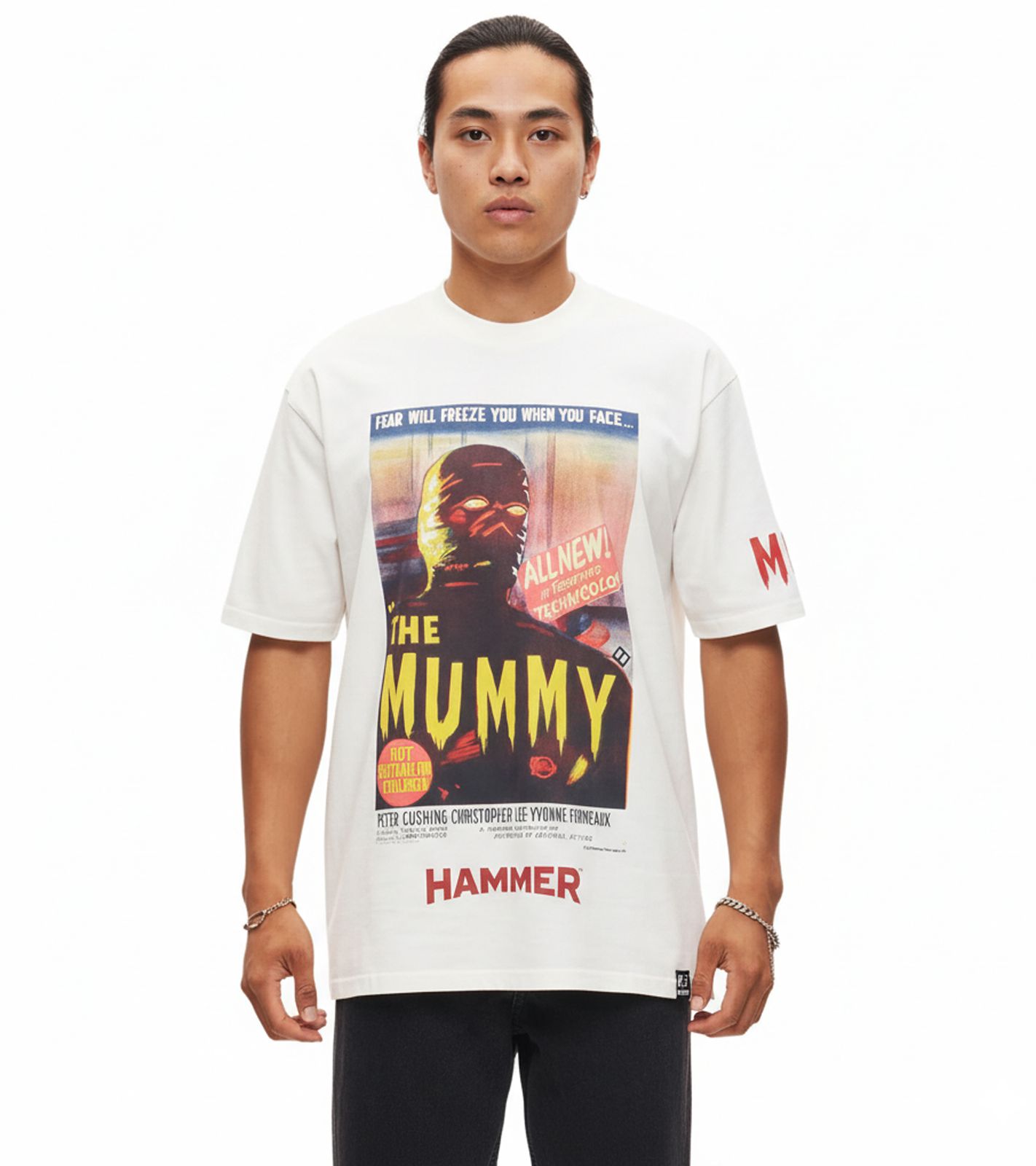 T-shirt da uomo RE:COVERED X HAMMER The Mummy con grande stampa frontale, camicia in cotone RCSTC109, ecru-bianco