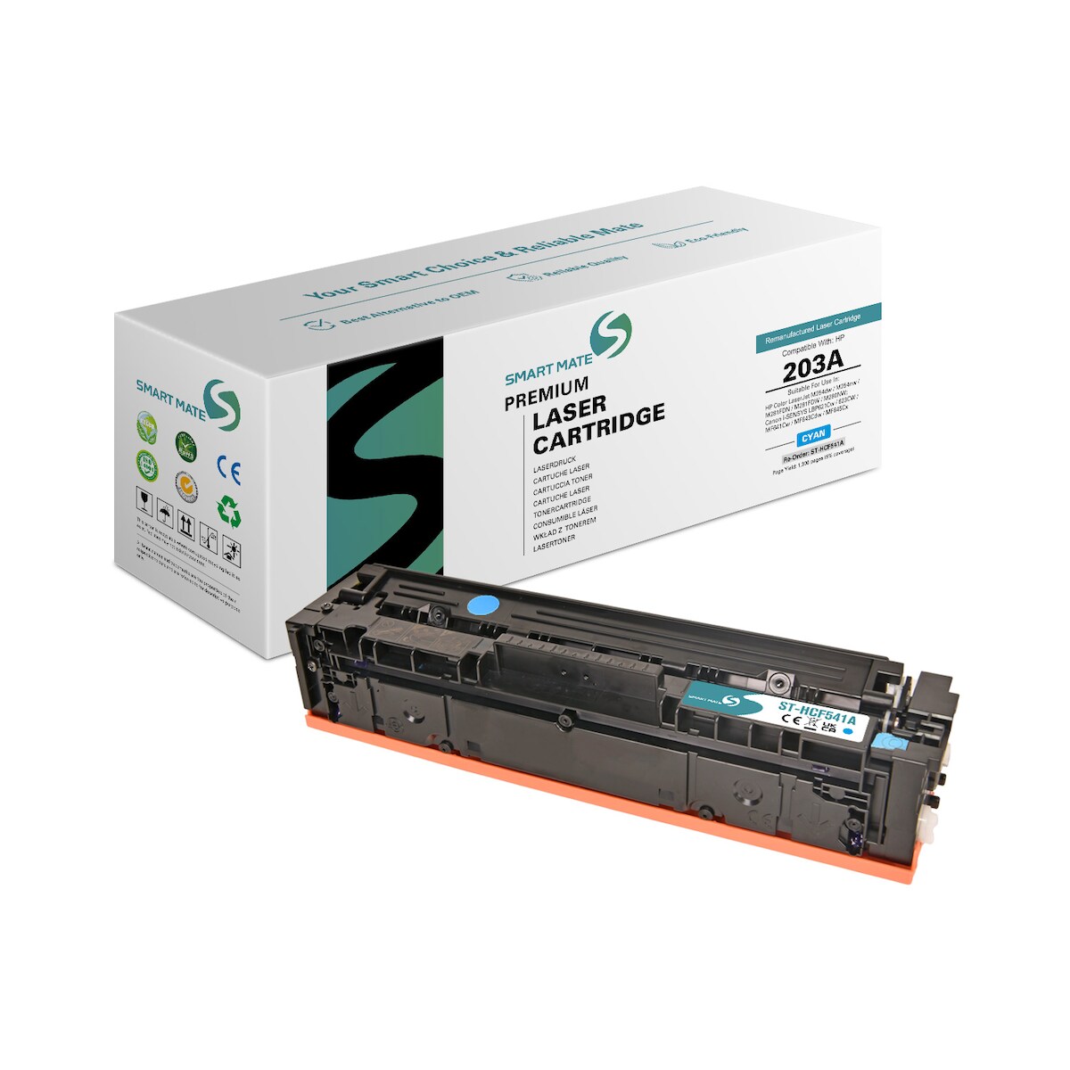 SmartMate wiederaufbereiteter Laser Toner Patrone für HP CF541A (203A) Cyan