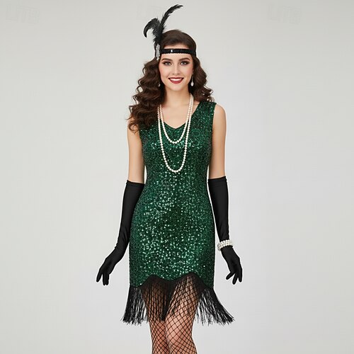 Set Anni Ruggenti Anni 1920 Abito Flapper Abito da cocktail con accessori Il grande Gatsby Ragazza Flapper Paillettes Frangia con nappe Frangia di nappa Con lustrini Costume Per donna Costume