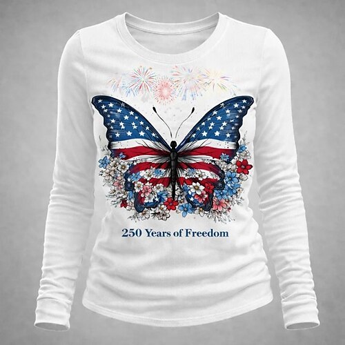 Maglietta patriottica per il Giorno dell'Indipendenza Americana 250° Anniversario Maglietta da donna Grafica Lettera Bandiera Stile classico casual Maniche lunghe Collo giro Collo rotondo Stampa
