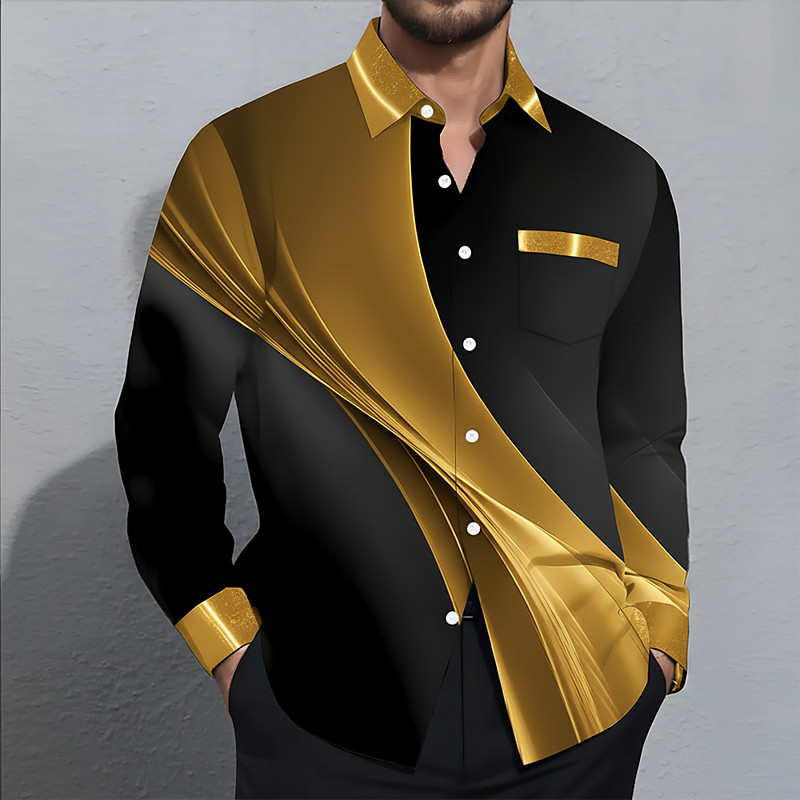 Men's Geometric Gradient Color Line Shirt Button Up Shirt Long Sleeve Fashion Casual Vacation Daily Streetwear Spring Fall Turndown 3D Print Collared Shirts Front One Pocket Black Grey Black / Green