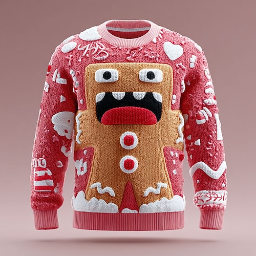 Hässlicher Weihnachtspullover Herren 3D-Druck Lebkuchenmänner Pullover Strickware Rundhalsausschnitt Lässig Urlaub Täglich Festival 3D-Druck warm halten Langarm Frühling Herbst Winter Rot -1 Rot -2