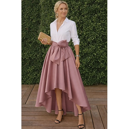 Linea ad A Lunghezza al pavimento Abito Camicia Abito da invitata a nozze Abito Formale Abito da cerimonia per signora Manica 3/4 Colletto a Camicia Elegante Matrimonio Formale Taffetà Raso