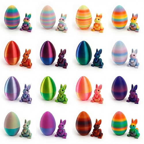 3D-gedruckte Ostereier mit beweglichem Überraschungshasen, regenbogenfarbenes Überraschungsei, beweglicher Hase als Fidget-Spielzeug, Osterkorb-Füllung für Kinder, Preise für die Ostereiersuche,
