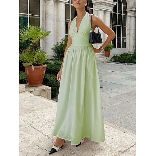 Per donna Abito maxi Abito a trapezio Vestito all'americana Casual Quotidiano Spiaggia Ferie Vestibilità regolare Semplice Senza Maniche All'americana Bianco Azzurro cielo Verde Albicocca Estate