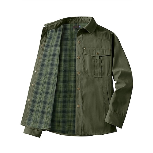 Herren Hemdjacke Freizeitjacke Urlaub Lässig Thermowarm Tasche Button-Down Frühling Herbst Herbst Winter Karomuster Vintage Mode Kragen Kurz Dunkelgrau Gelb Rosa Orange Jacken