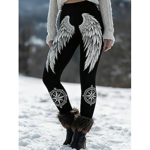 Damen-Leggings im Wikinger-Stil, kuschelig, für Urlaub, Vintage-Look, Ethno-Stil, lange Länge, hoher Bund, Grafikprint, bequem, dehnbar, für Outdoor-Aktivitäten, Urlaub, Freizeit, schwarz, Frühling,