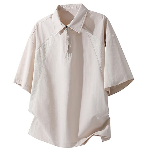 Per uomo Camicie di lino Polo Casuale Vacanza Bavero Manica Corta Moda Essenziale Tinta unica Raffreddamento Zip a un quarto Estate Primavera Rosa chiaro Nero Albicocca Camicie di lino