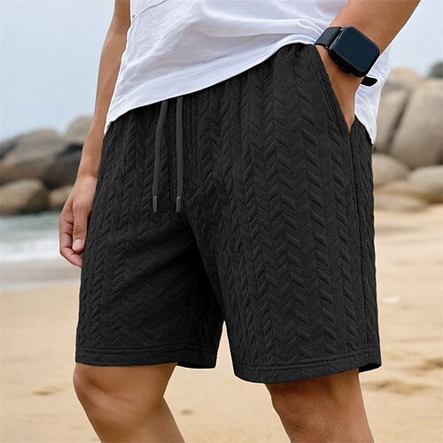 Per uomo Shorts Pantaloncini casual Jacquard Testurizzato Semplice Gallone Comodità Traspirante Sopra il ginocchio Casuale All'aperto Spiaggia Vacanza Moda Nero Bianco Micro-elastico