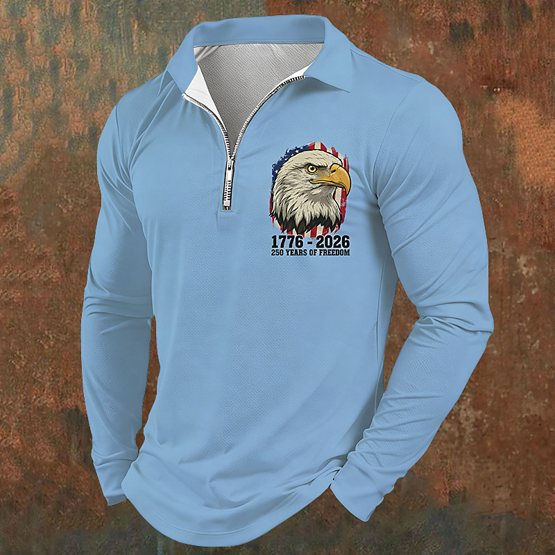 American Independence Day Men's Eagle Polo Polo Shirts Zip Polo Long Sleeve Polo Shirts Quarter Zip Sports Fashion Casual Daily Outdoor Vacation Half Zip Print Spring Fall White Blue