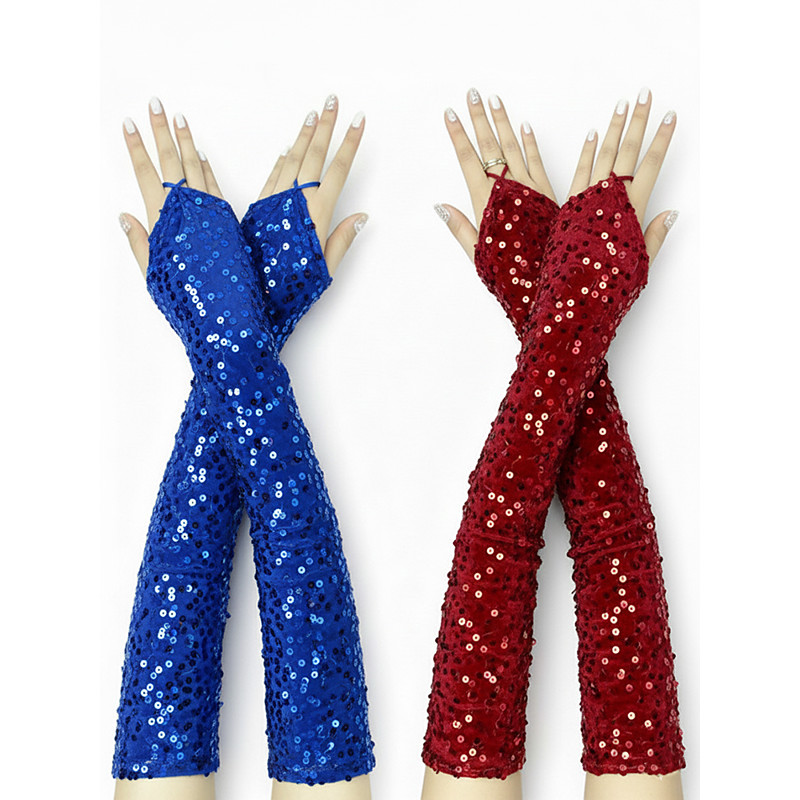 Women's Polyester Sequin Fingers Arm Gloves, 2-Pair Set, Multi-Color Options, Perfect for St. Patrick's Day and Party Wear, Sparkly and Stylish