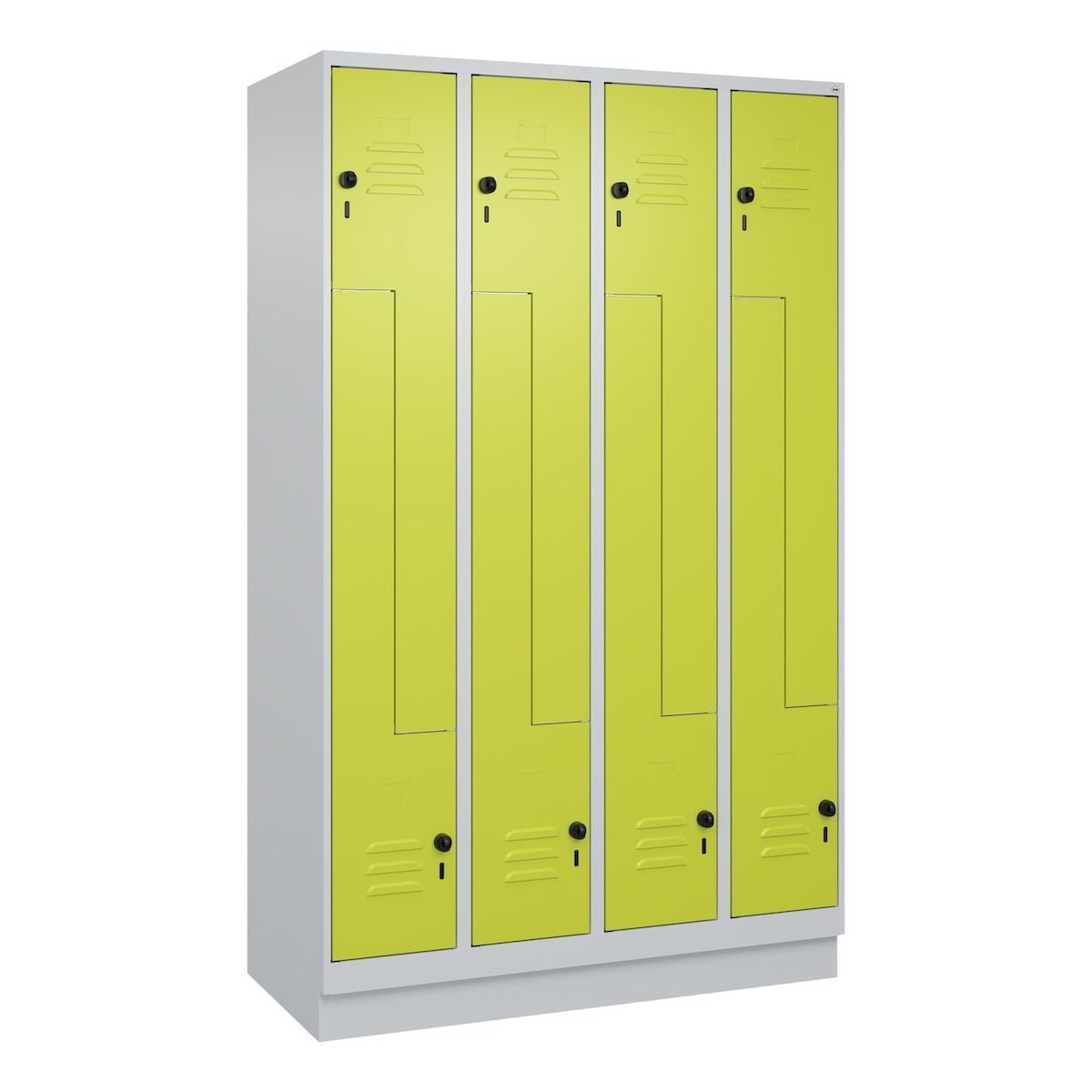 C+P Z-Spind Classic PLUS, Sockel, 8 Abteile, HxBxT 195x120x50cm, Sicherheitsdrehriegel, Hellgrau/Clowngrün von PROREGAL
