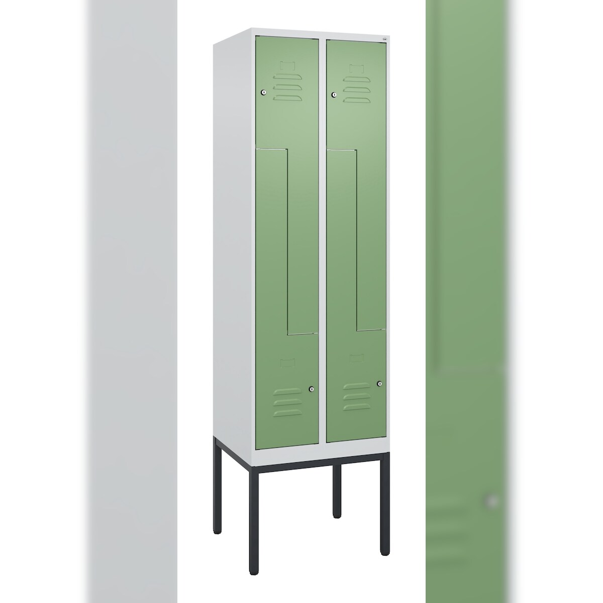 C+P Z-Spind Classic PLUS, Gestell, 4 Abteile, HxBxT 212x60x50cm, Zylinderschloss, Hellgrau/Resedagrün von PROREGAL