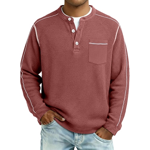 Herren Waffel T-Shirt Waffel-Henley-Hemd Langarm Einfarbig Einheitliche Farbe Lässig Kontrastspitze Vintage-Stil Henley Lässig Outdoor Sport Outdoor Herbst Winter Ganzjahres Hellgrün Hellblau