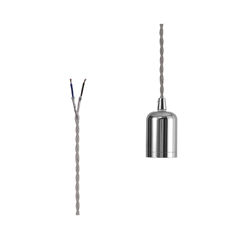 Glorelle 4.7cm E27 Lampholder Chrome With 3m Silver Braided Twisted Cable & Deeper Shade Ring Luxuria