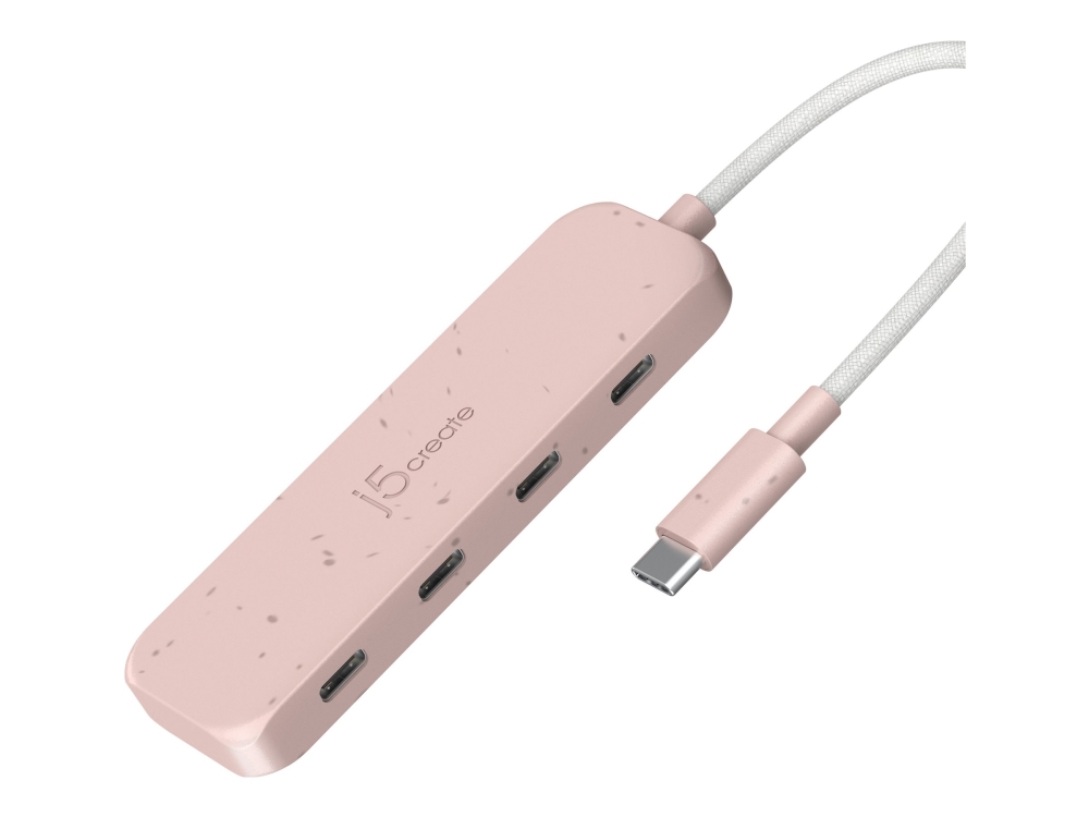 j5create Umweltfreundlicher USB-C-zu-4-Port-Typ-C-Gen-2-Hub, USB 3.2 Gen 1 (3.1 Gen 1) Typ-C, USB 3.2 Gen 2 (3.1 Gen 2) Typ-C, 10000 Mbit/s, Rose, Acrylnitril-Butadien-Styrol, recycelte Kunststoffe, Taiwan