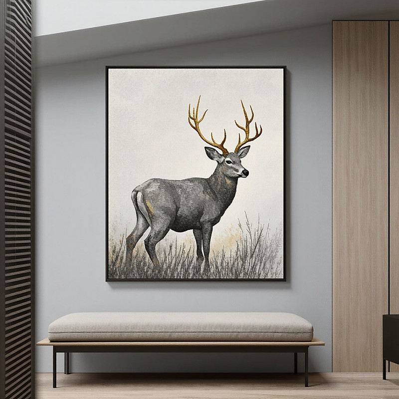 Handmade Rustic Deer Landscape Painting Decor Cabin Wall Art Mule Deer Buck Painting Vintage Woodland Room Antique Deer Art Painting