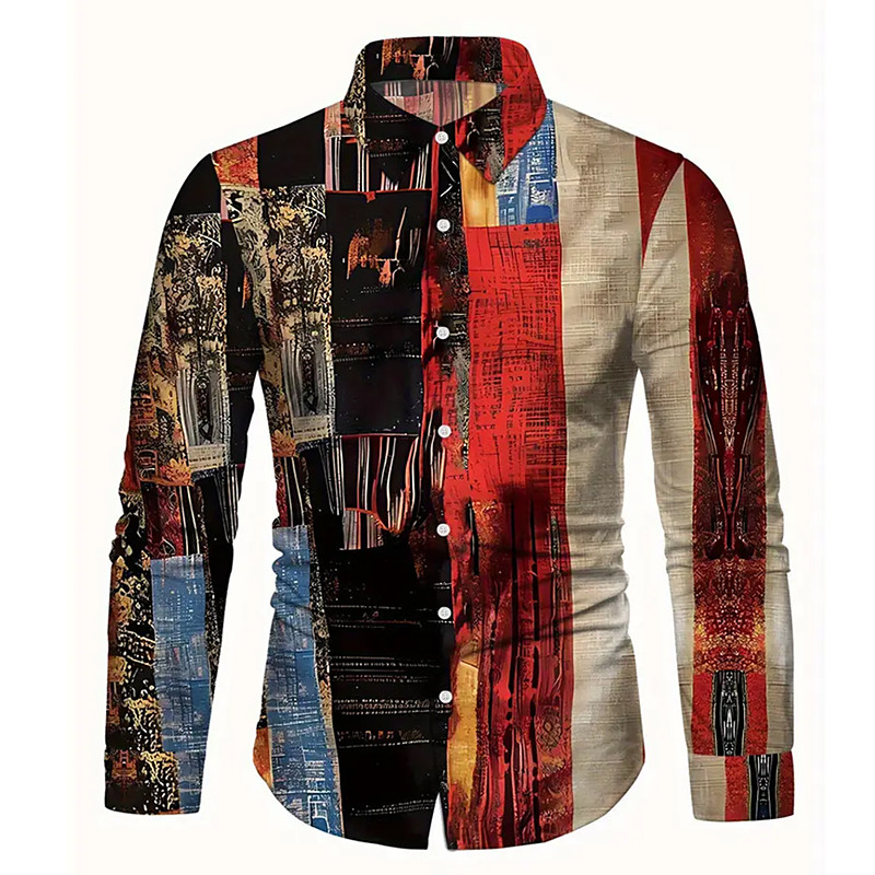 Men's Color Block Patchwork Shirt Button Up Shirt Casual Dress Shirt Long Sleeve Fashion Casual Vacation Daily Streetwear Summer Spring Turndown 3D Print Collared Shirts Red Blue Orange Green