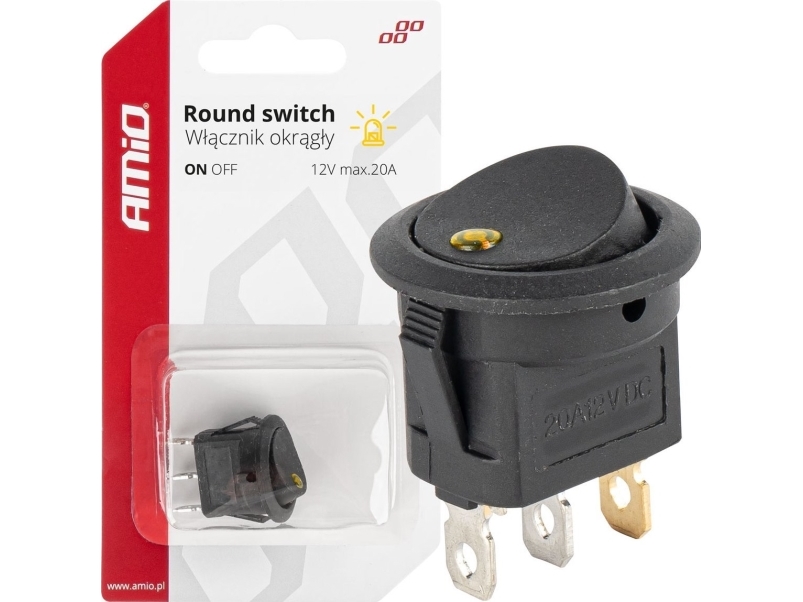 AMiO Switch rund knapkontakt 12v 20a tænd/sluk-belysning gul amio-03962